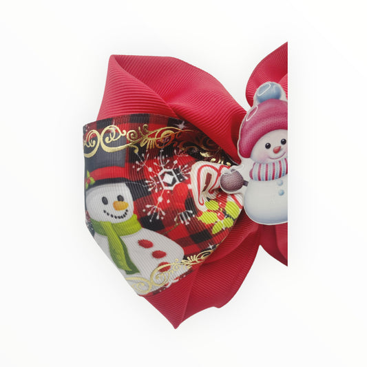 Red Christmas Hair Bow for Girl Snowman Hair Bow for Christmas
